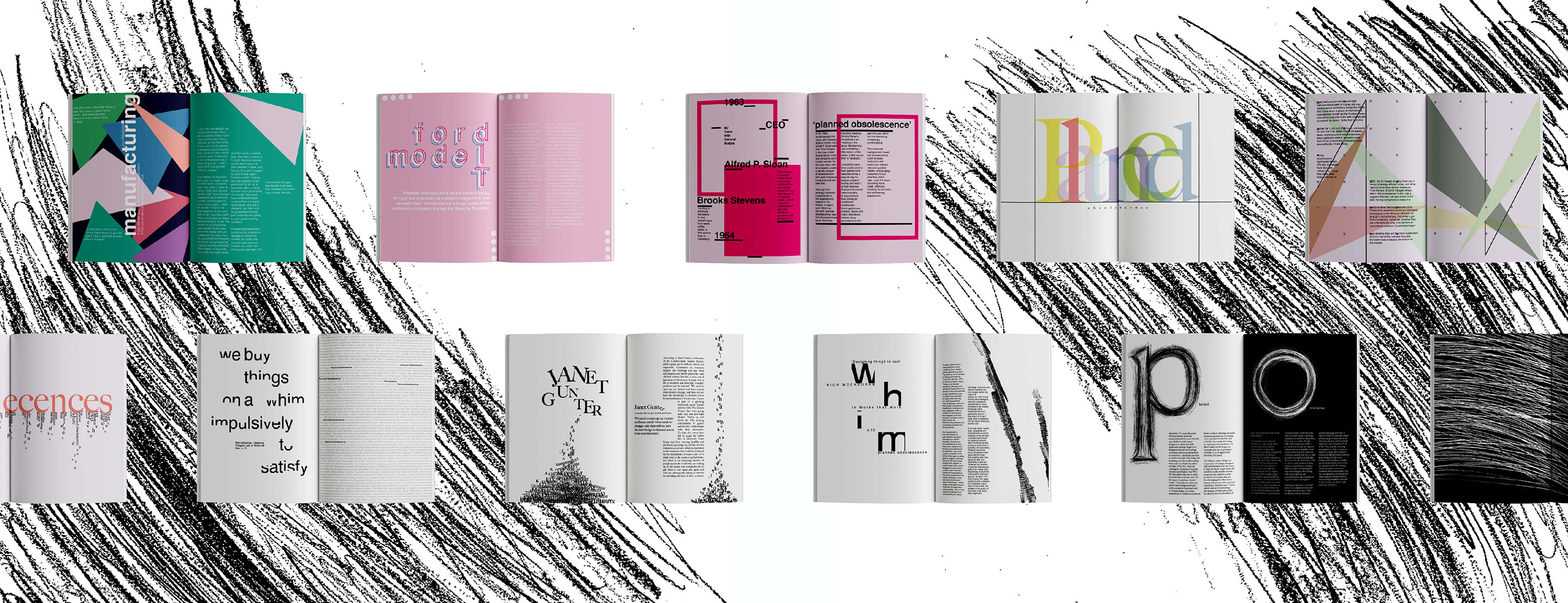 After researching the impact of planned obsolescence and the role it plays in our everyday life’s I decided to create my zine reflecting concept and ideas presented about planned obsolescence in the zine and use the imagery I created to present deterioration and a broken nature as the reader read through the zine.
